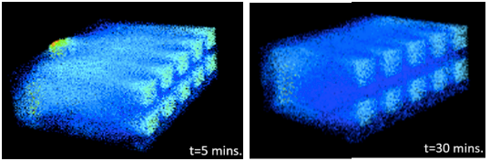 Figure 2. Flow Simulation of the NSA Modified Classroom at 5 and 30 minutes