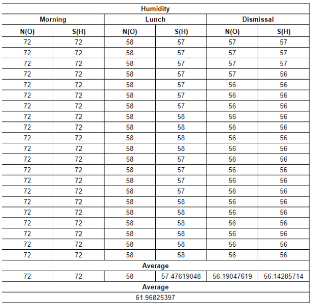 TABLE 3c. Realino Humidity