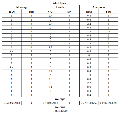 TABLE 3a. Realino Wind Speed