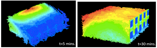 Figure 3. Flow Simulation of the USA Modified Classroom at 5 and 30 minutes